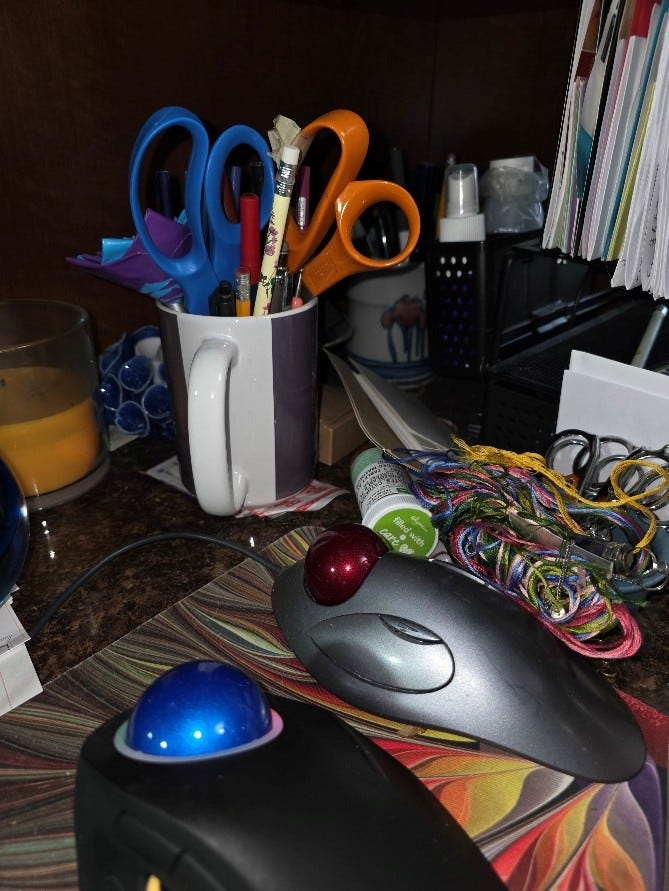 ScissorsScissors Among ChaosCatherine L CoatesApr 12, 20263ShareSnipsFor opening packages.For cutting flowers.For cutting stitching threads.Separate ones for cutting paper.Often missing when I need them.Even though there are a multitude in the house.